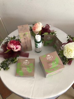 Alghe, aloe, soia, liquirizia lenitiva schiarente e rassodante.
